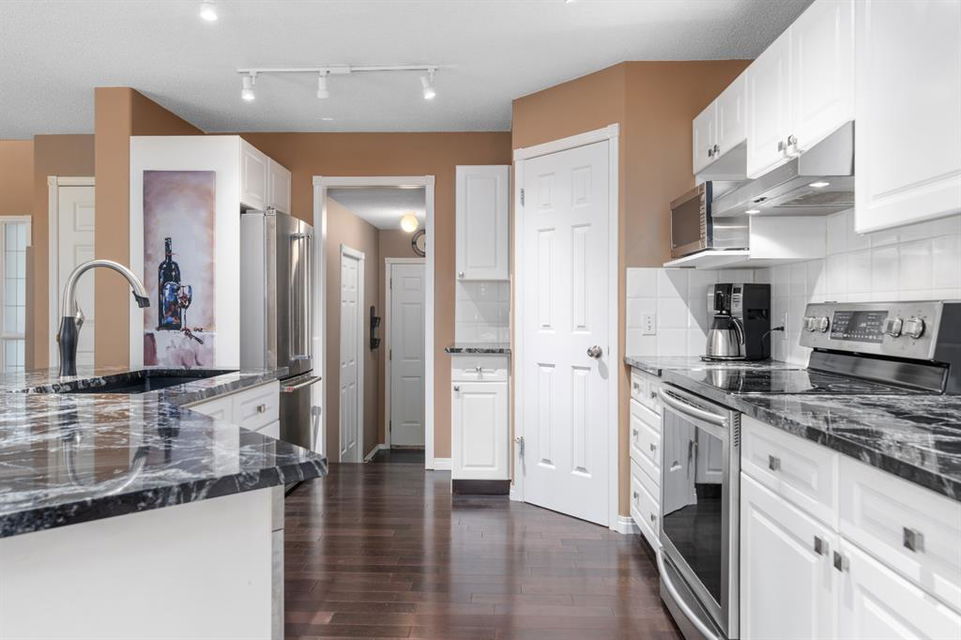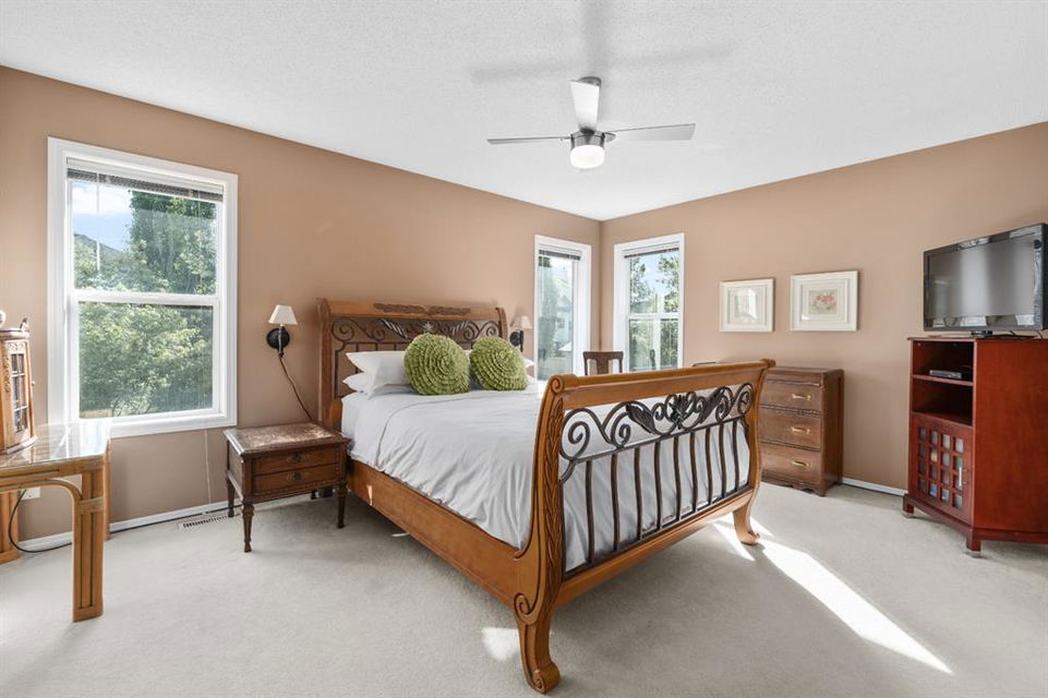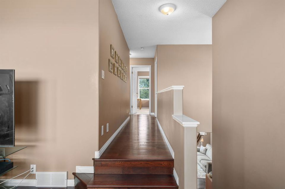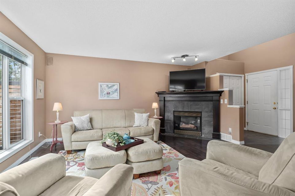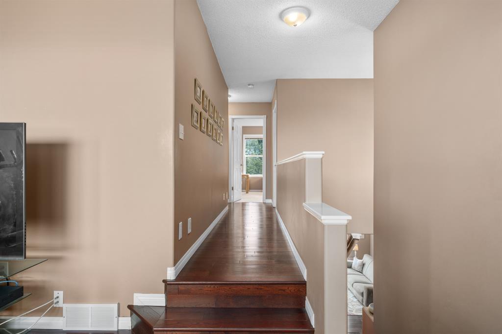 FIRST TIME THIS HOME HAS HIT THE MARKET WITH METICULOUS SELLERS. Incredible value in this home that features over 2400 sq ft in finished living space. Located across the street from a green space and a park. This double-front attached garage home is priced to move. A large open concept with rich dark hardwood, white cabinets, granite countertops, a gas fireplace, and a south-facing backyard. This home has a large bonus room up where the rich hardwood has been extended to. Generous sized second bedroom and, a massive master bedroom, walk-in closet, and ensuite. The fully finished basement features a large rec room, bedroom, and full bathroom. All of this located in the very desirable community of Hidden Valley with sought-after schools (k-Gr 9 Catholic, or Public or french immersion) within walking distance of this home. None of this is anything you want to miss.