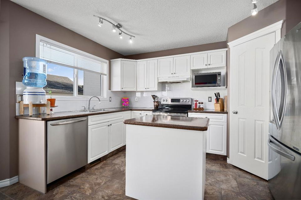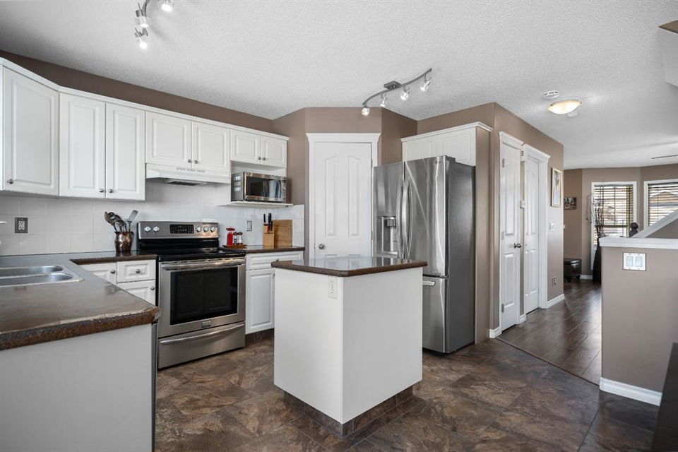 LIVE ON THE SUNNY SIDE OF THE STREET!!! This renovated 2 story home with 3 bedrooms up and 1 down is fully finished with approx 2000 sq ft of finished living space. Modern paint! Laminate floors! Gas fireplace! Faux Granite countertops! Kitchen island! 4 bedrooms! 2.5 baths! Walkin closet in master! Ensuite! Walk in pantry! Newer rugs! Fenced yard! This home is exactly what you have been looking for, all under $400k! Located on a quiet street down the way from a children’s park with a pathway to the k-gr 9 school. You don’t want to miss this house!! It won’t last long!!!