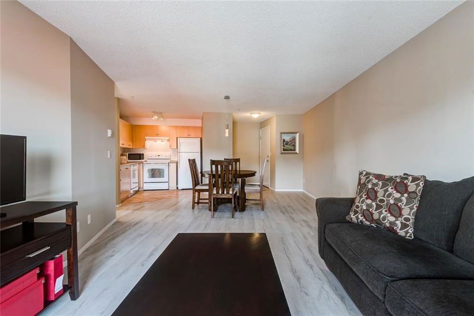 Best priced 2 bedroom condo in Cochrane! This corner unit has views overlooking the downtown and hill of Cochrane. New flooring give this unit a clean and modern feel. An open kitchen concept gives a very functional floorplan. Bedroom sizes are nothing to sneeze at and give lots of flexibility on how to decorate your private sanctuary. Insuite laundry and storage. Two surface stalls makes it ideal for a couple or a roommate situation. Easy walking distance to so many amenities, you might only have to use your car to drive into Calgary. You are going to want to see this fabulous corner unit condo!!!