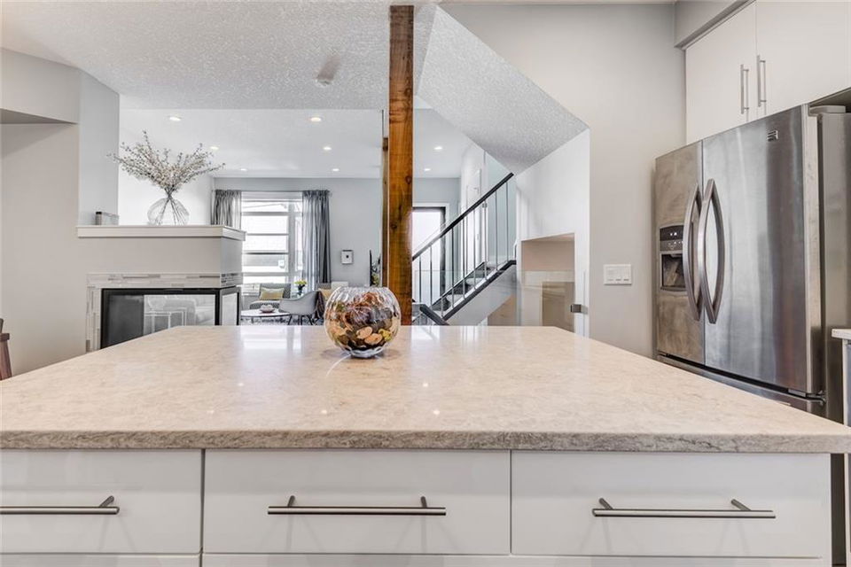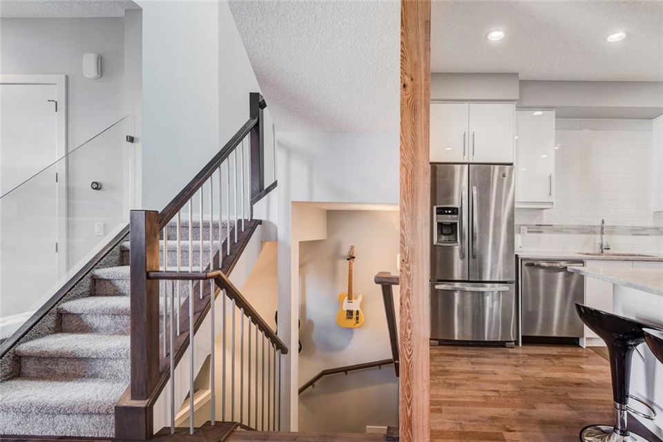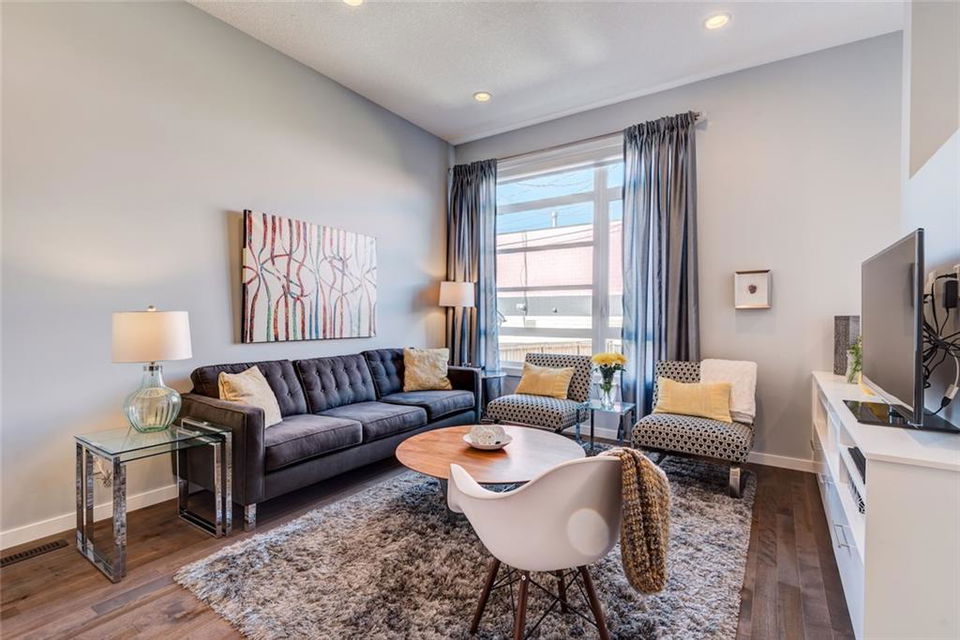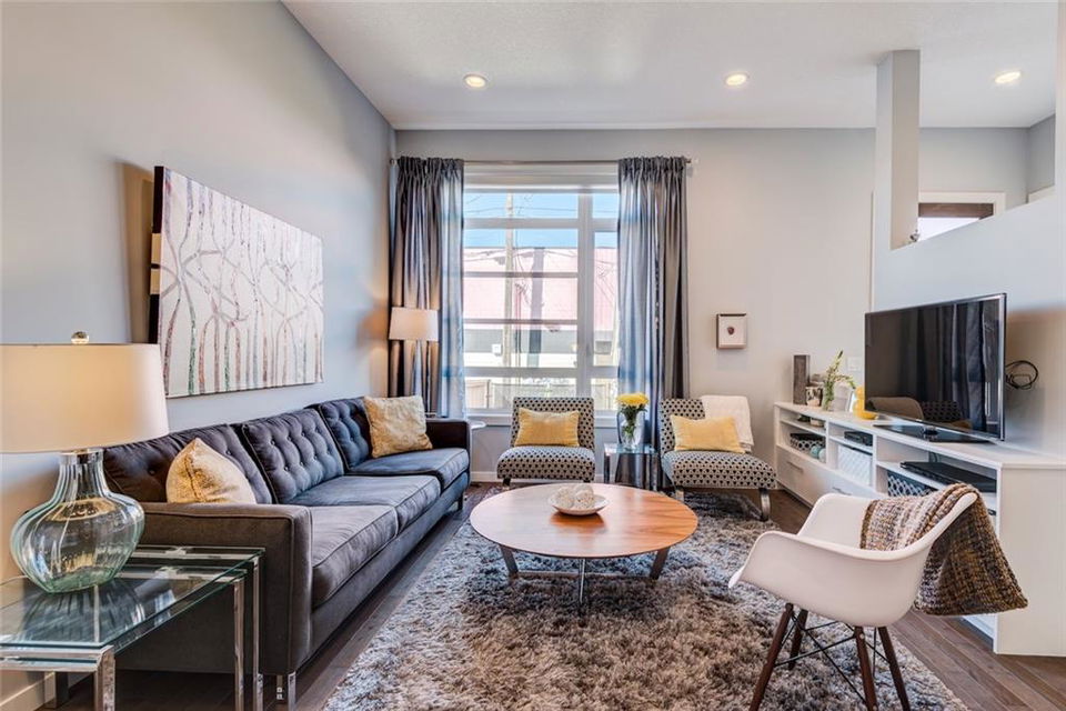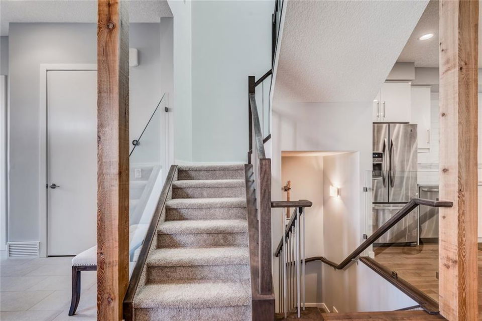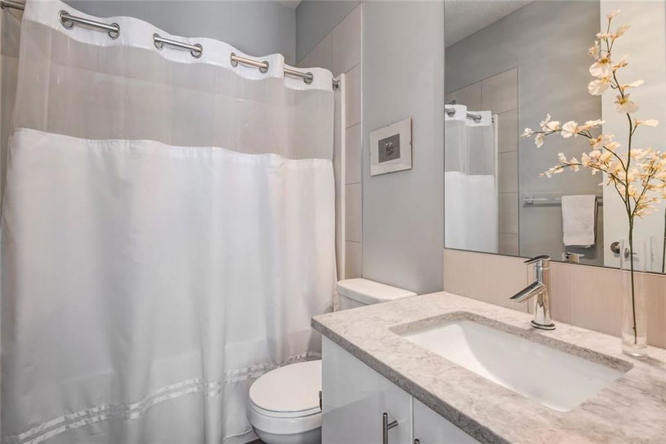 Fantastic Find in Montgomery!! This loft style townhouse is sure to exceed your expectations! This home boasts 10ft ceilings in the living room, tiled feature wall, main floor has hardwood throughout and includes a three sided glass fireplace. Large windows allow for natural light and give this home a spacious feeling. Upstairs continues to wow you with 2 bedrooms that each have their own ensuite. The master bedroom ensuite features a freestanding bathtub, custom tiled shower, heated floors, and an enormous walk-in closet. The laundry room is conveniently located on the second floor and comes with a sink and cupboards. Check out the fully developed basement. Tons of living space in this townhouse. This property also has an irrigation system set up in the yard, so you can keep your outdoor space looking its best. Come and view this wonderful home close to schools and shopping – you won’t be disappointed!