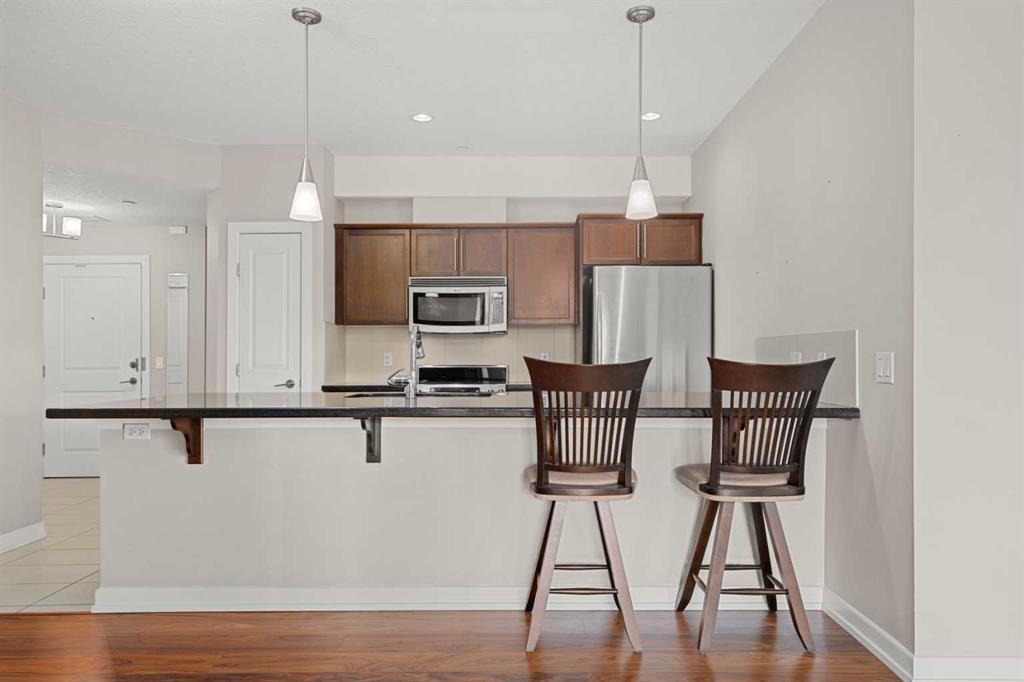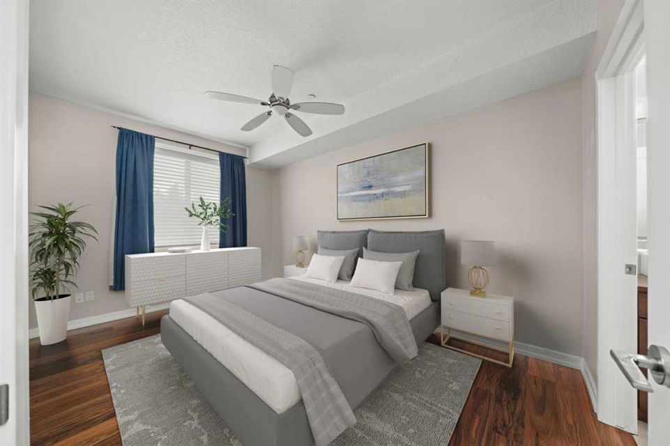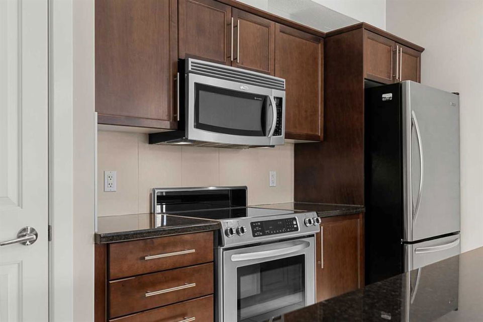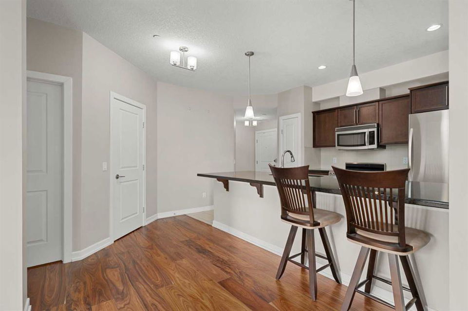 SEXY DOWNTOWN CONDO!!! Don’t miss out on your chance to get into this incredible spacious condo. On this quiet street you will walk into this executive condo. Take a quick elevator ride up and you will be right at your corner condo unit that floods in with natural light due to all the extra windows. The kitchen is open to the dinning room that allows you to have that large dinning table to sit all your friends and family, something rare to find in an apartment condo. The living room is situated to take full advantage of all the south facing windows. The master bedroom gives tons of space with all the closet organizers and comes with a full ensuite. The second bedroom is equipped with a built in desk and murphy bed, all included in the sale. High quality finishing through out, extra storage locker just for you down the hall and underground secure parking all make this condo something you don’t want to miss. Just a short walk to all the trendy restaurants and bars on Edmonton Trail, walking distance to Main street in Bridgeland and easy access to transit taking you right into downtown.