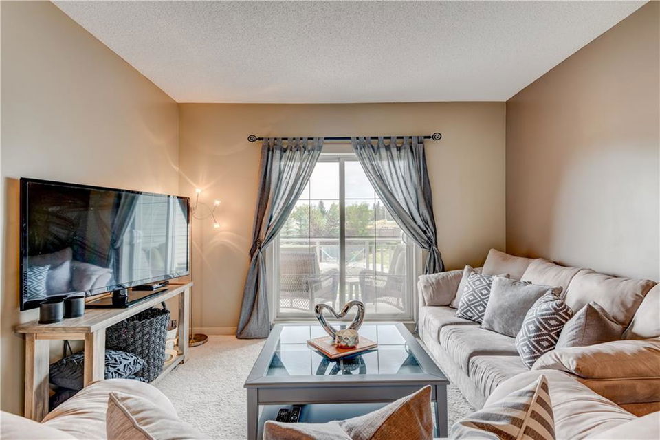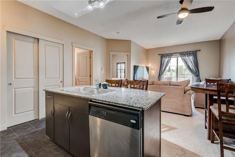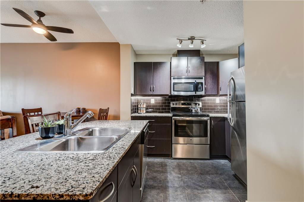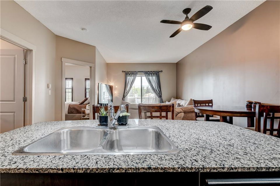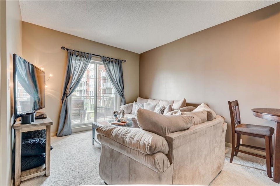 Own this condo for only $237/week*! This cozy home is loaded with upgrades! The kitchen has stainless steel fridge, stove, dishwasher and microwave. The beautiful granite counter tops and black back splash add to the sophistication of this kitchen. Enjoy the oversized kitchen island that accommodates an eating area. You have lots of natural lighting as the condo has a southern exposure – which gives your bedroom and living room plenty of sunlight. The bedroom has beautiful window shutters and plenty of closet space. The bathroom also boasts upgraded finishings. Enjoy your upgraded carpet and the in-floor heating. Step onto your balcony and enjoy view of the pond and the gazebo in the courtyard. There is even a den that you could use for a home office space. Have guests coming to town? Enjoy the Guest Suites and Owner’s Lounge. This building has an onsite gym and underground parkade that also accommodates guest parking. This unit has one titled parking stall. What more could you ask for? *conditions apply and subject to approval