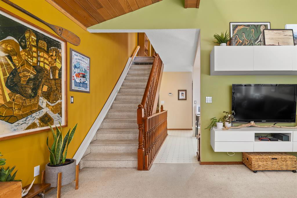 This is an opportunity you do not want to miss. Do you want a mountain-style cabin with big-city access? Do you like cozy nights next to a wood-burning fireplace? Do you like mature communities with easy access to downtown Calgary? Do you like large scenic decks with stunning views that all your friends will drool over? Well, then this is the home for you! This fully detached home on a pie shaped lot is in the desirable community of Mayland Heights, just off 16 Ave and Deerfoot Tr NE. Easy access to downtown (be there in 20 mins by transit), transit, and tons of amenities. Easily the last affordable community close to downtown. Inside you walk into a living room with tall, vaulted ceilings with lots of windows to allow in all the natural light you can muster. The kitchen is functional and opens onto a dining room that has the flexibility to be used as a second living room if you so choose. This multipurpose room overlooks a large outdoor deck that goes over the top of the double car garage and takes advantage of a breathtaking, one-of-a-kind view rarely found in Calgary. On the upper floor is a large bedroom that has its own private deck for your own piece of paradise. The basement is fully finished with two bedrooms but easily can be converted back to three if you so choose. All I can say is, when opportunity is knocking, you should answer.