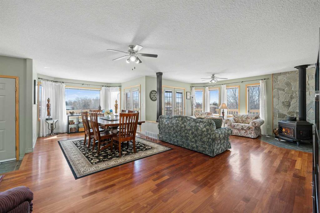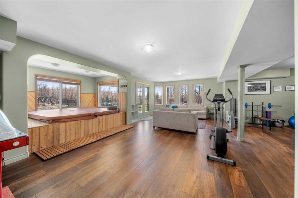 THE PERFECT BLEND OF COUNTRY AND CITY! First time on the market, this beautifully handcrafted home by the seller has been lovingly cared for. With a total of almost 4000 Sq ft of total developed living space sitting on 4.63 acres with only a 27 mins drive to downtown Calgary, a 15 mins drive to downtown Airdrie and a 5 mins drive to Cross Iron Mall you will not want to miss this home. Mahogany onsite finished hardwood floors! Tons of windows letting in natural sunlight! Built-ins throughout out home! Massive kitchen with tons of storage! Wood stove in living room that can heat over 2000 sq ft! Air bubble tub in ensuite! Finished walkout basement! Indoor hot tub included along with pool table and accessories! 3 bedrooms up with 2 bedrooms down! Massive amounts of storage! 24’x24′ attached garage! 36’x44′ heated shop with concrete floors! Fenced personal yard! Fenced pasture! Subdiviable lot! Tons of mature trees! This lot, and this house in this location do not come up at this price often. Call today to get in to see this home before it is gone.