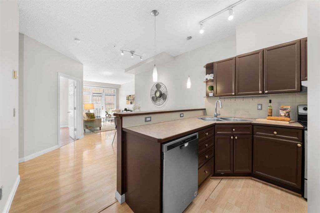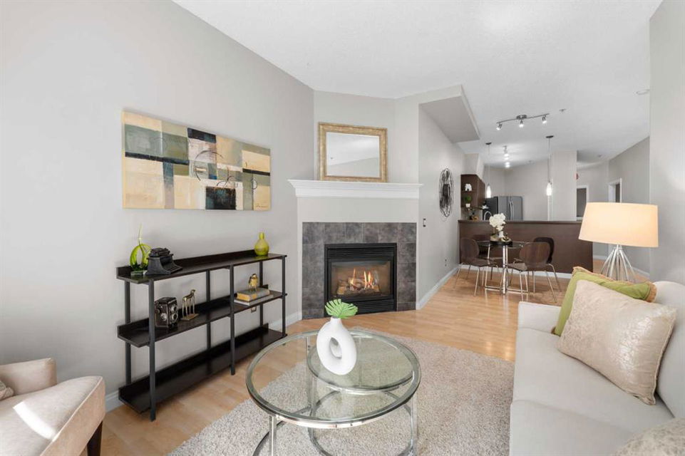 2 BEDS PLUS DEN! Incredible location just off 17 ave with easy walking distance to grocery, shopping and night life. Classy and stylish building that is very well maintained. The kitchen has an eat-up bar and tons of cabinet space all open to the kitchen nook and large living room. With such a perfect space for entertaining the gas fireplace is just icing on the cake to this condo. Two large bedrooms with the master bedroom having its very own ensuite. Large windows, in-suite laundry, and bright open spaces well located with everything you need within walking distance easily allow you to leave your car in the underground parking and enjoy the surroundings. Highly affordable with an incredible location, you do not want to miss out on this listing.