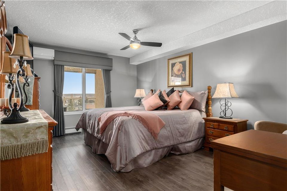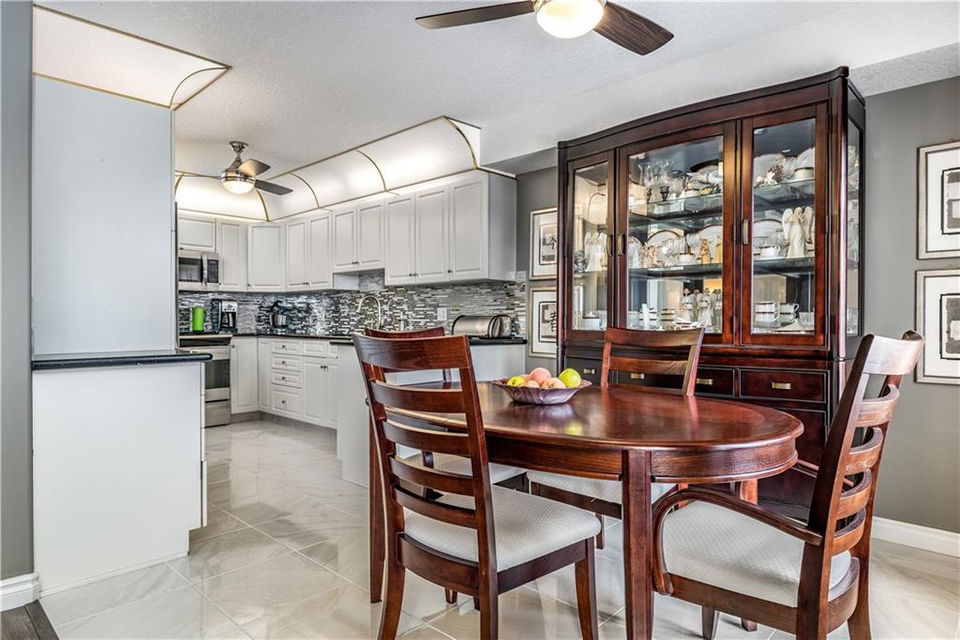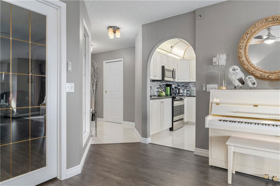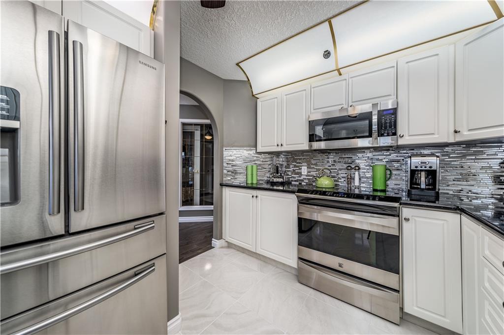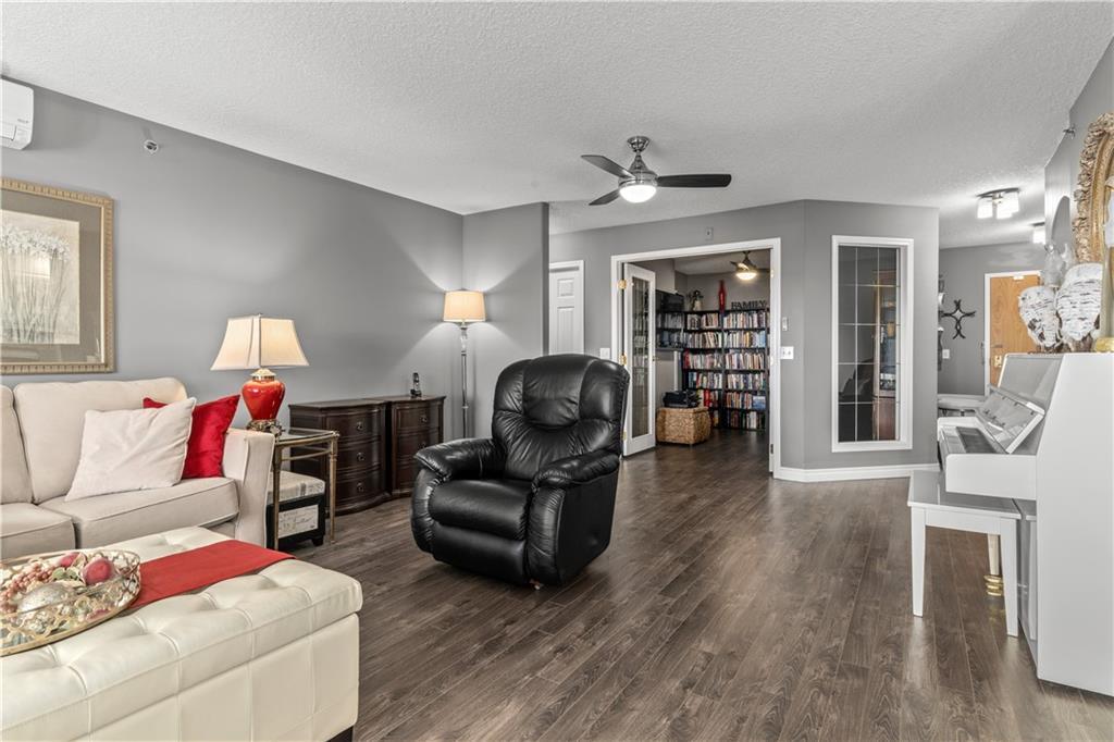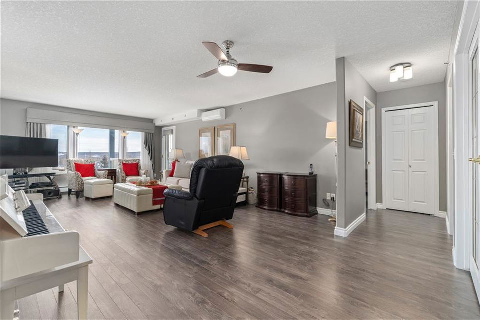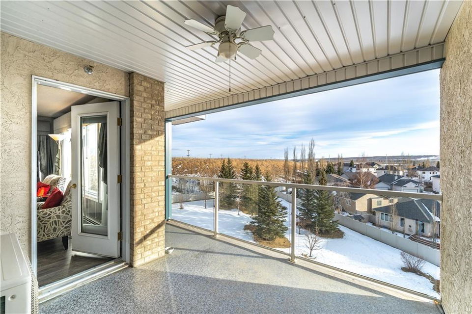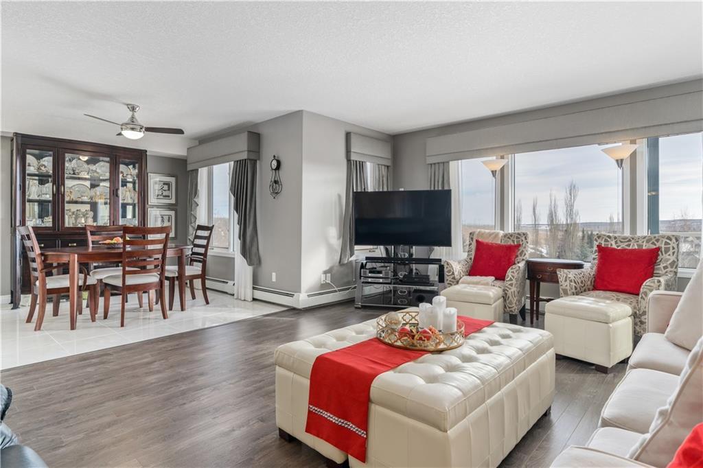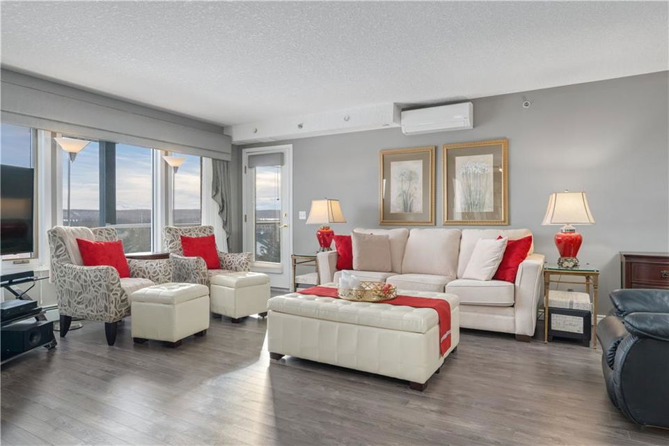 STUNNING!!! RENOVATED!!! MOUNTAIN VIEW!! TOP FLOOR!! This home is breath taking from the moment you walk in the front door. One of the largest single level units in the building complete with overlooking a greenspace and a mountain view. One massive bedroom and den are attached to a spacious and grand living room that is drenched in sunlight. A large dinning area is perfect for those family dinners and the kitchen is well placed with lots of cabinet and counter space. The backsplash is a high end custom order tile. Counters are a stylish granite. All the appliances are stainless steel and replaced by the current owner since they purchased it. The flooring is a high quality laminate floor and the walls have been painted a modern neutral colour. In the ensuite there is a step in soaking tub. Additional storage rooms are on the deck and in the parkade. This is all steps to Westhills shopping center.