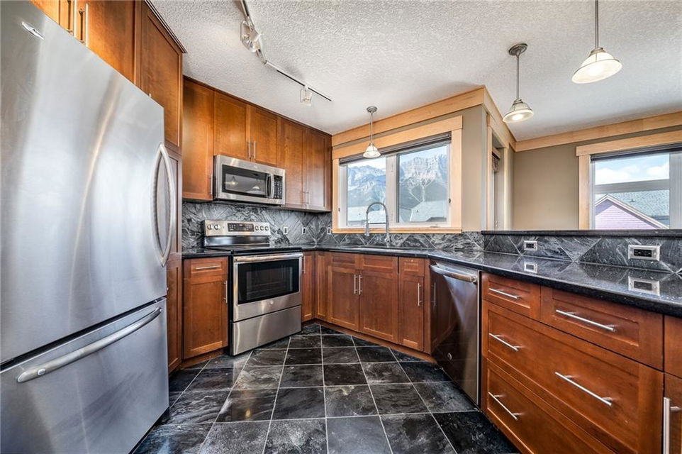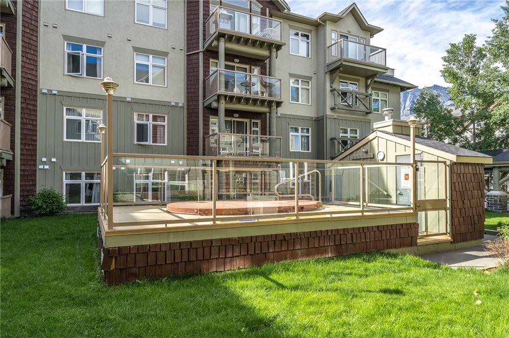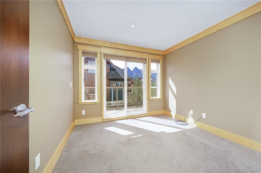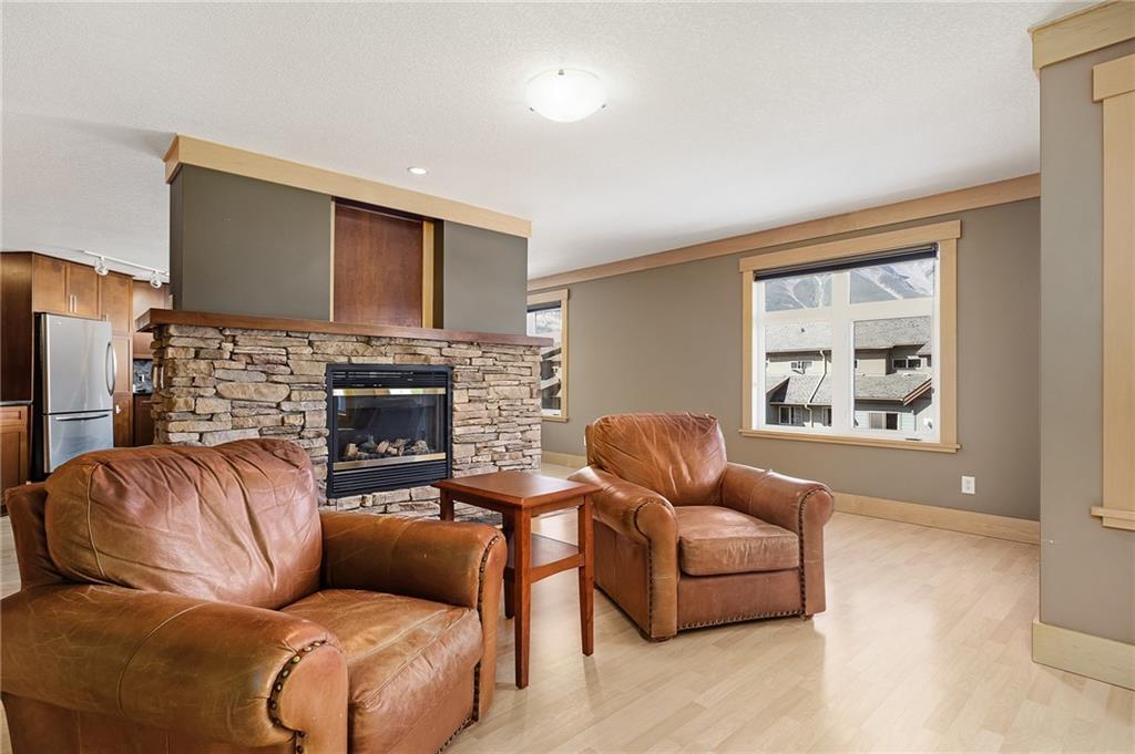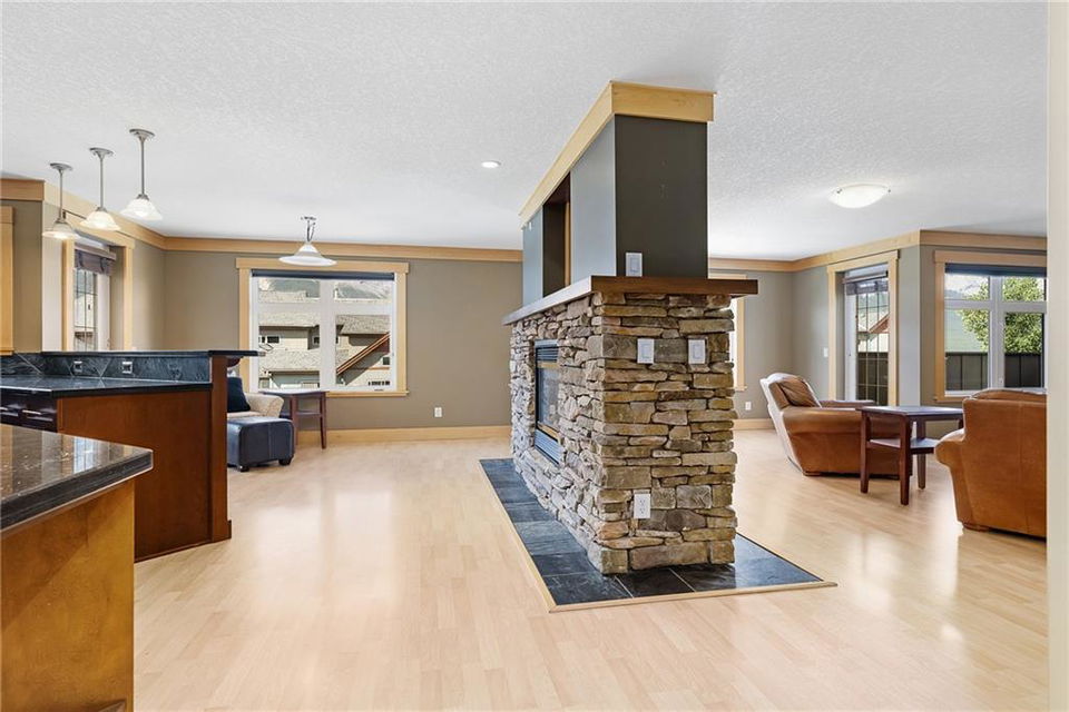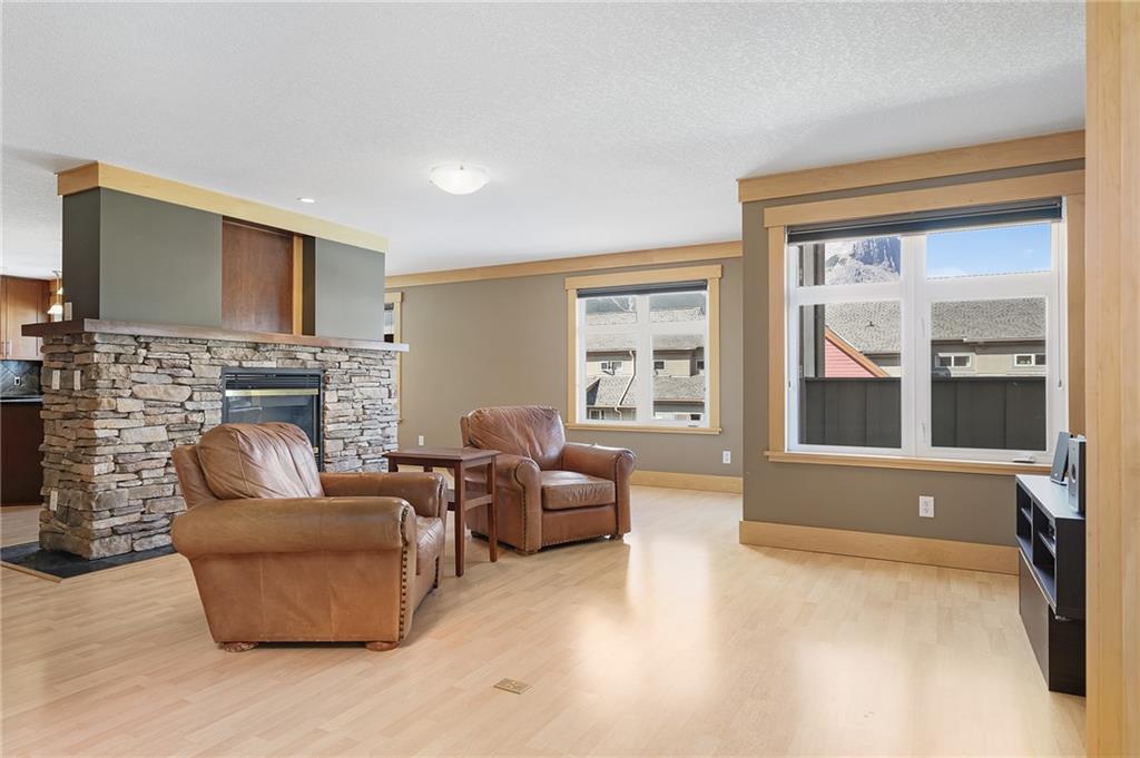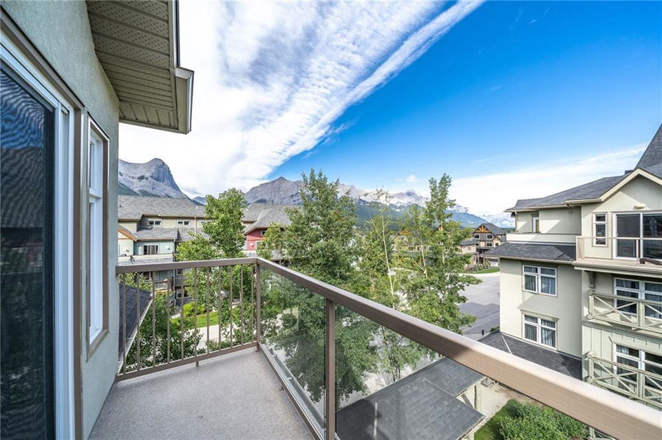 FIND YOUR PIECE OF TRANQUIL PARADISE in the exclusive Windtower in Canmore. As you walk in you’ll see the beautiful two-sided feature fireplace, huge living room w/ a balcony facing onto the three sisters Mountain. A massive kitchen with tons of counterspace. Granite kitchen countertops with an eat up bar!! The kitchen nook overlooks another mountainous paradise with it’s own private deck, perfect for the barbecue weather. There is a half-bath for guest’s use, second bedroom with its own full bath and walk-in closets and a den is large while giving access to a third balcony. The master bedroom is led in by two large doors with its own private balcony. A big beautiful ensuite with jetted tub standup shower and a walk-in closet. This home is something that you don’t want to miss!! Full access to hot tubs and amenities. Walking distance to shops coffee, restaurants, pubs and tons of hiking trails. This home is truly paradise. Don’t miss out on this rare opportunity.