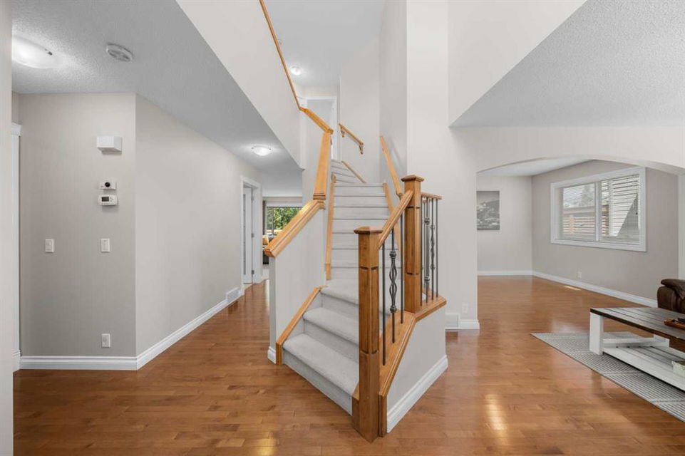 Upstairs, the primary suite includes a tranquil retreat area and a walk-in closet that’s truly a dream. Three additional bedrooms offer plenty of space for kids, guests, or hobbies. The unfinished basement is ready for your personal touch. Major exterior upgrades were completed in 2023, including a new roof, siding, eavestroughs, and downspouts. Other improvements include the hot water tank (2023) and an attic enhancement to improve ventilation.