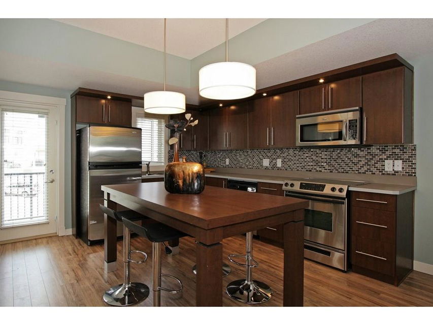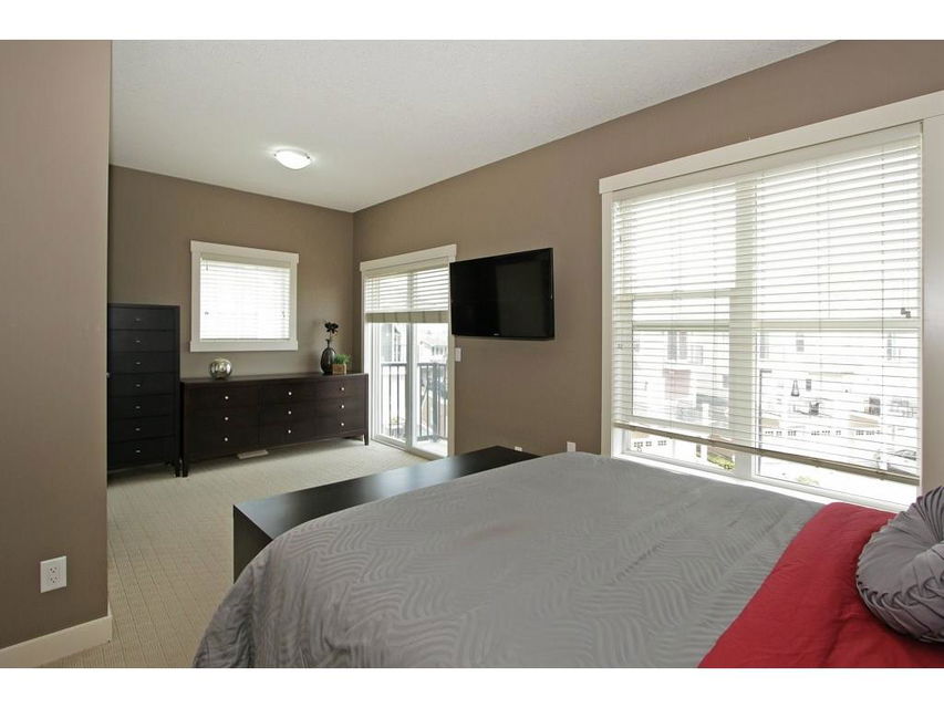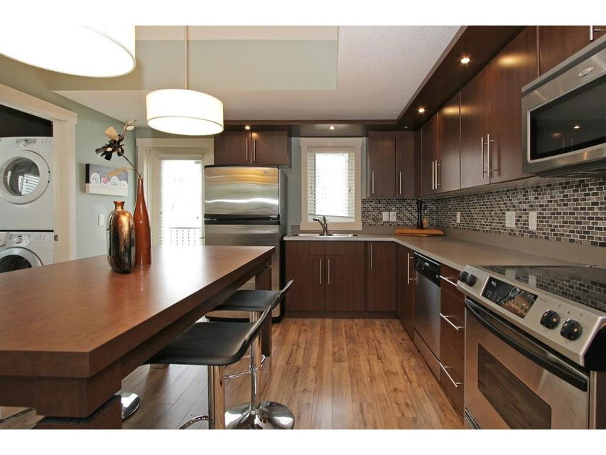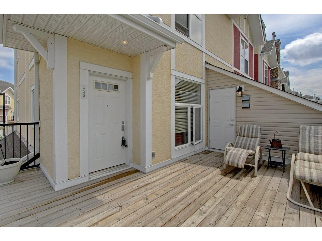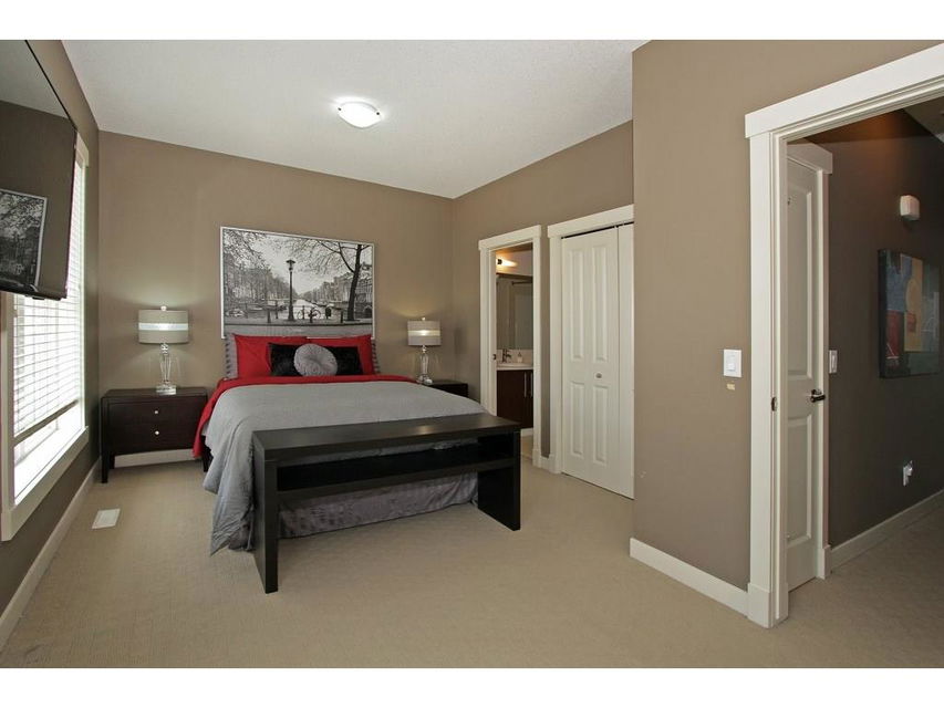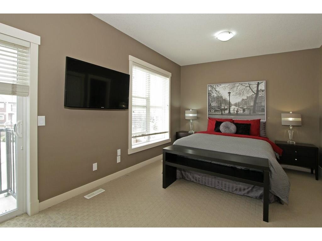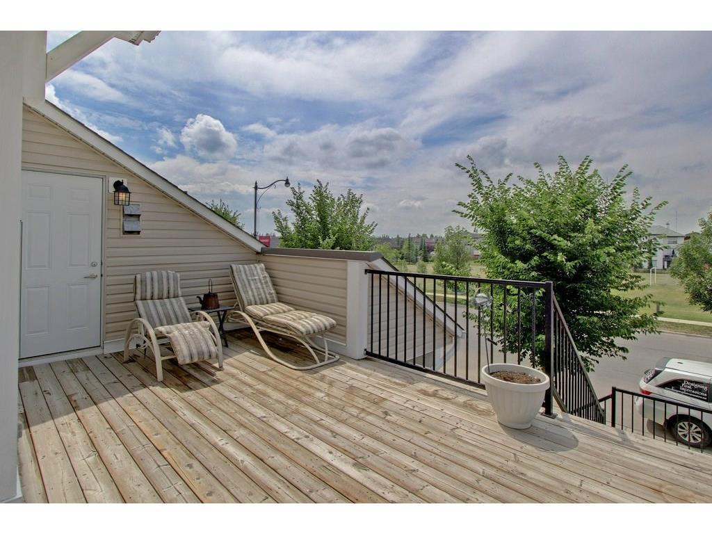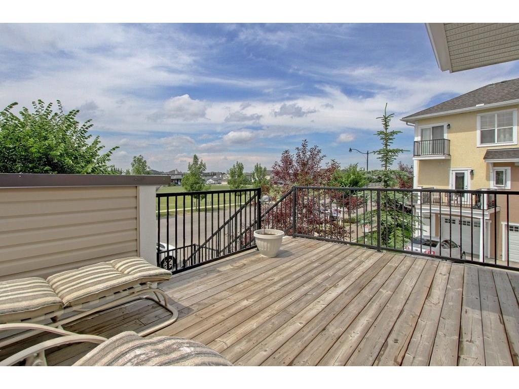 EXECUTIVE END UNIT!!! This stylish end unit townhouse is just waiting for the perfect driven, successful, up and coming executive to make this place their home. A private raised deck that overlooks a greenspace is what greets you as you walk up to the front door of this unit. Separate storage just for you on the deck is just to your left. As you walk in, the bright and open main floor is the first of many surprises you find here. A well appointed kitchen with a massive island that can double as kitchen table, if you like, is the perfect set up for entertaining and everyday life. The large living room give lots of space for your furniture set up. The upstairs hosts two master bedrooms. One equipped with a private balcony, ensuite and large closet space. The other with large windows, an ensuite and walk-in closet. The basement gives an oversized garage with extra storage under the stairs. All of this in a very desirable area, close to amenities and an easy access into downtown Calgary.