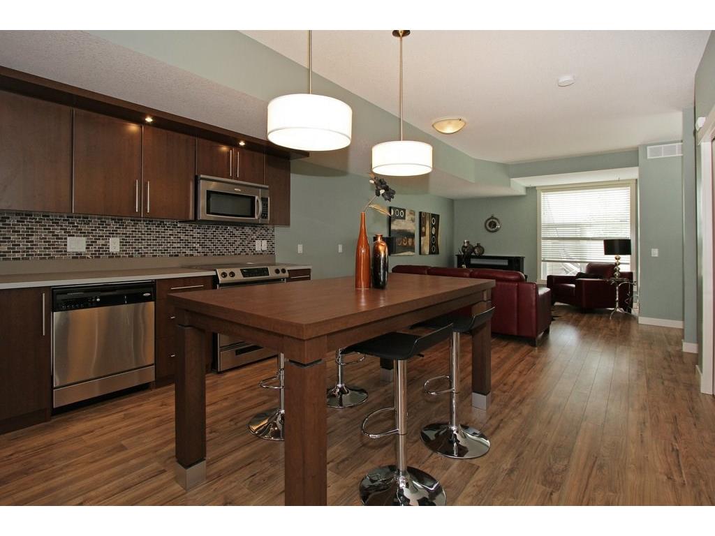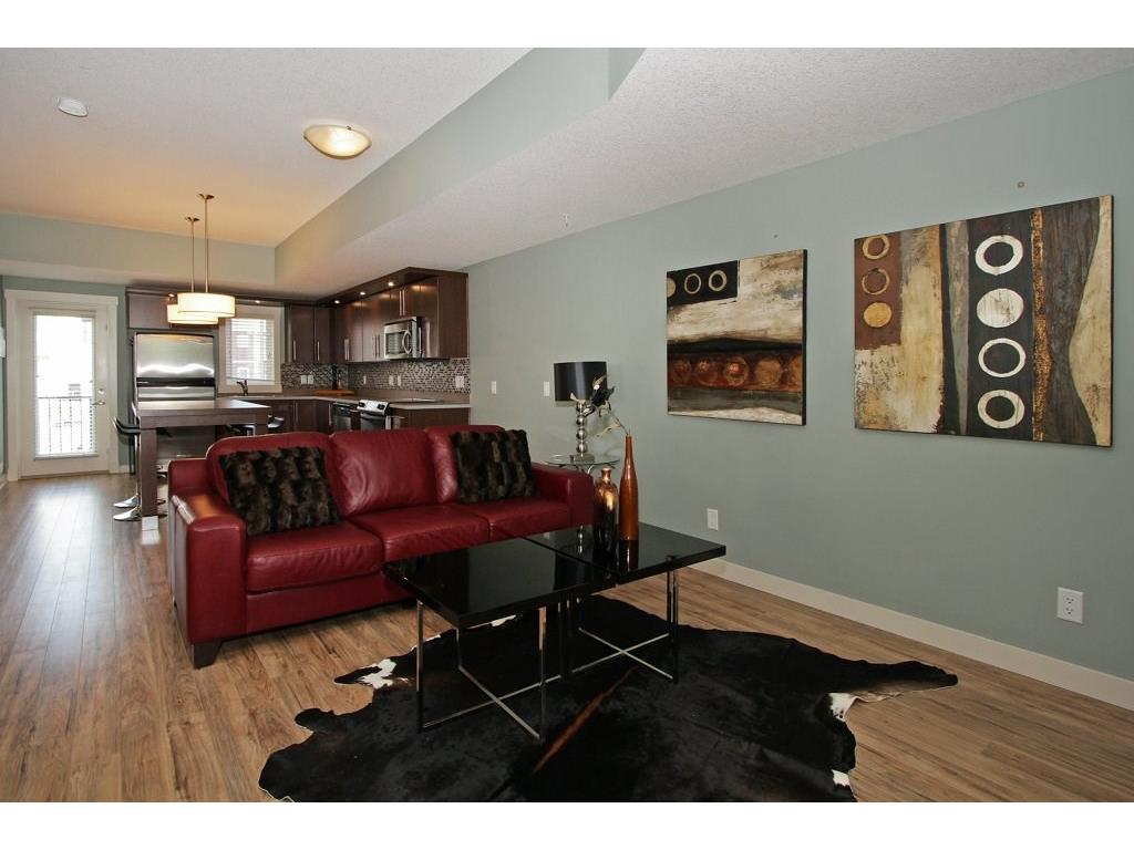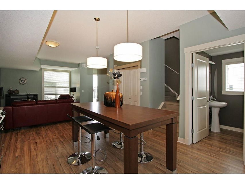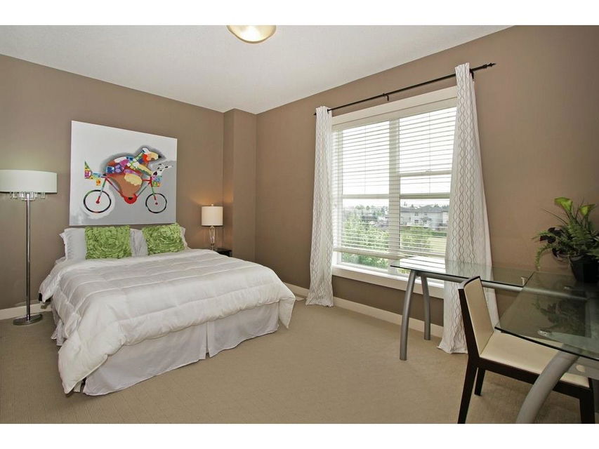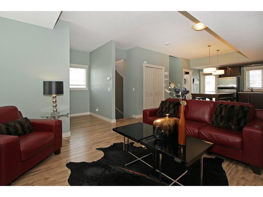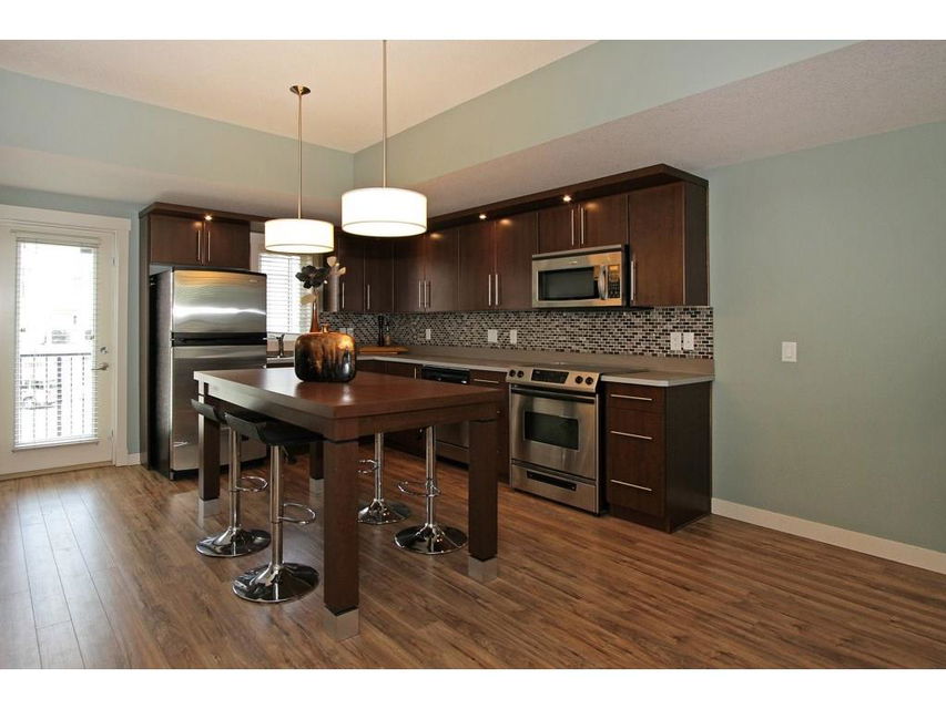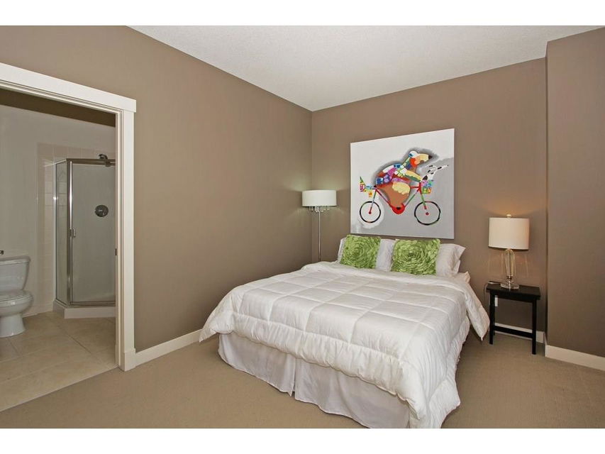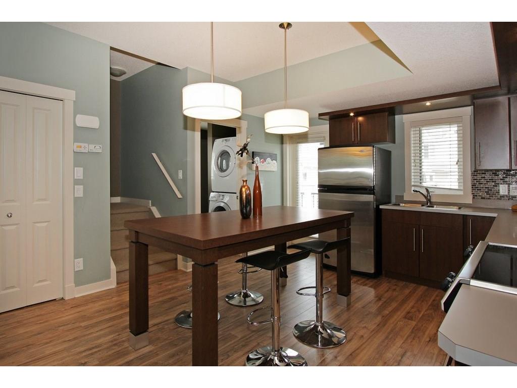 EXECUTIVE END UNIT!!! This stylish end unit townhouse is just waiting for the perfect driven, successful, up and coming executive to make this place their home. A private raised deck that overlooks a greenspace is what greets you as you walk up to the front door of this unit. Separate storage just for you on the deck is just to your left. As you walk in, the bright and open main floor is the first of many surprises you find here. A well appointed kitchen with a massive island that can double as kitchen table, if you like, is the perfect set up for entertaining and everyday life. The large living room give lots of space for your furniture set up. The upstairs hosts two master bedrooms. One equipped with a private balcony, ensuite and large closet space. The other with large windows, an ensuite and walk-in closet. The basement gives an oversized garage with extra storage under the stairs. All of this in a very desirable area, close to amenities and an easy access into downtown Calgary.